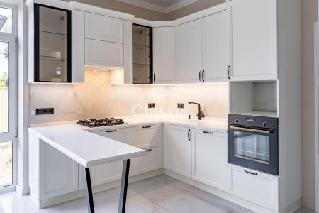 Стильный минималистичный кухонный гарнитур Лофт 450 – оптимальный выбор для тех, кто любит функциональность, простоту и лаконичный внешний вид. Глухие фасады с ровным глянцевым покрытием и минимальное число деталей дают идеальную базу для кухонного интерьера. Белая цветовая палитра гарнитура великолепно сочетается с кухонной техникой в черном цвете с хромированными элементами.