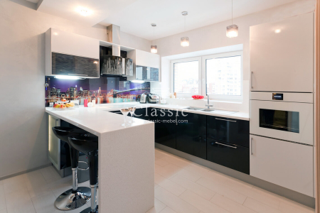 Бежевая кухня на фото дарит ощущение тепла и уюта. Она будет хорошо смотреться в любом помещении – с хорошим и средним освещением, вытянутой или квадратной планировки. Стиль Модерн предполагает простоту и лаконичность форм, а также умеренность в дизайне. Классическое сочетание песочного бежевого и черного оттенка фасадов в глянцевом исполнении придают кухне на фото привлекательный вид. Глянцевая поверхность не требует сложного ухода – сегодня на рынке производителей мебели представлены разнообразные средства по уходу за ними. Глянцевые фасады требуют лишь бережного обращения, что гарантирует их презентабельный внешний вид на долгое время. Выбирая покрытие дверок для Вашей будущей кухни на заказ, необходимо тщательно продумать, в каких условиях Вы собираетесь мебель использовать. В случае, если в помещении повышенная влажность, либо, наоборот, слишком сухо, либо живут многочисленные домашние питомцы, лучше более тщательно подойти к выбору материалов и проконсультироваться с опытным дизайнером Классик.