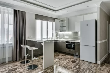 Кухня выполняется под заказ. Это значит, что, параметры будут полностью соответствовать вашему помещению, дополняя и делая кухонное пространство уютнее и привлекательней. Тип мебели – встраиваемый. Количество секций и расположение зависит от индивидуальных предпочтений и может меняться в соответствии с пожеланиями заказчика. Кухонный гарнитур «Современная 485» – это изысканная роскошь в сдержанном оформлении.